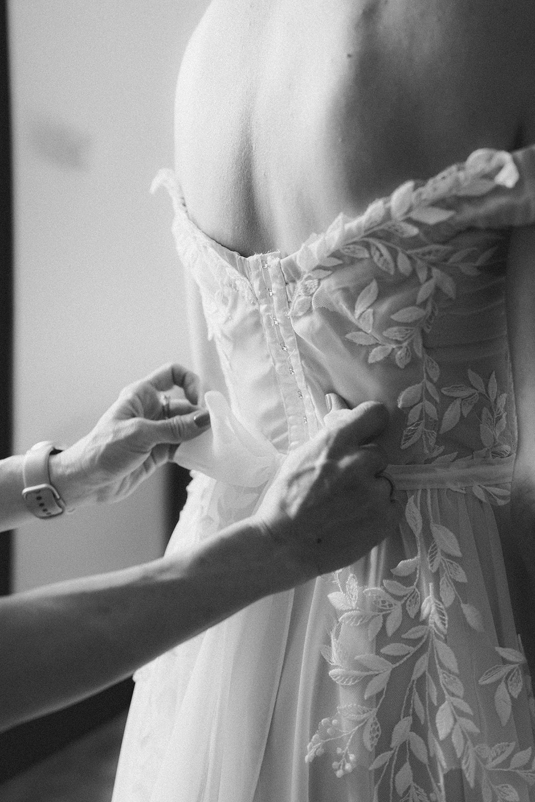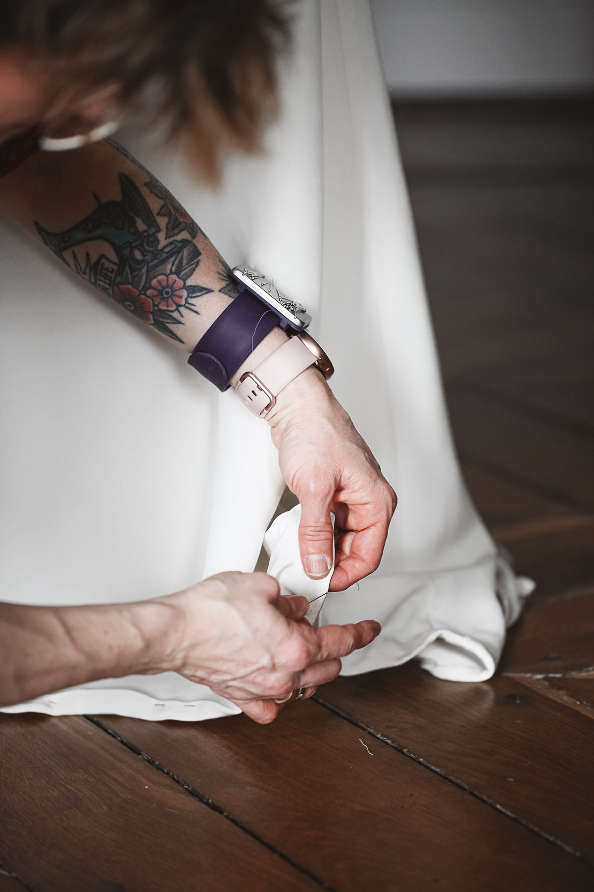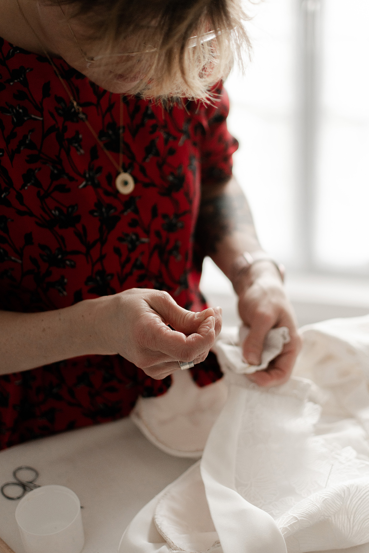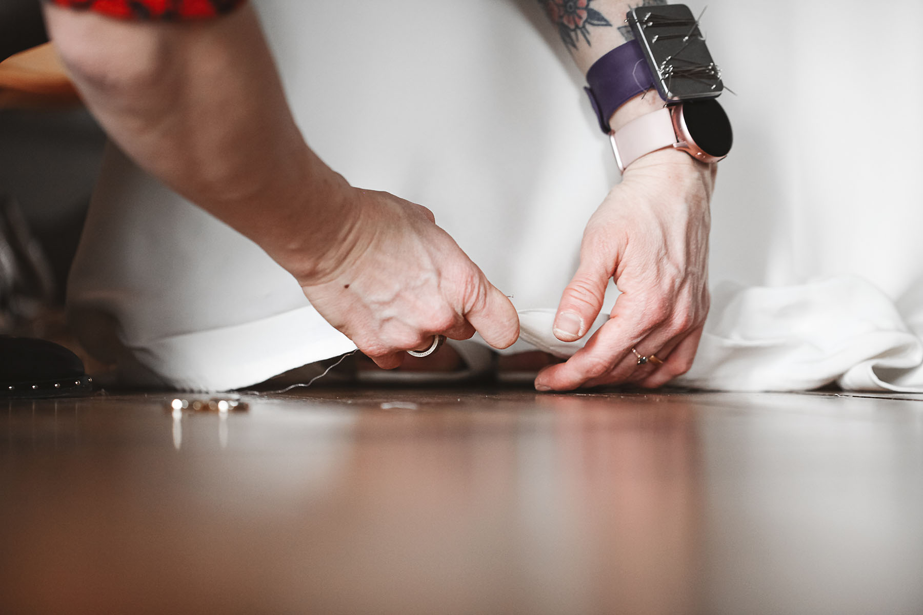 L’ourlet et les finitions de votre robe sont réalisés à l’atelier dans les dernières semaines avant le mariage pour que tout soit parfait le jour J.