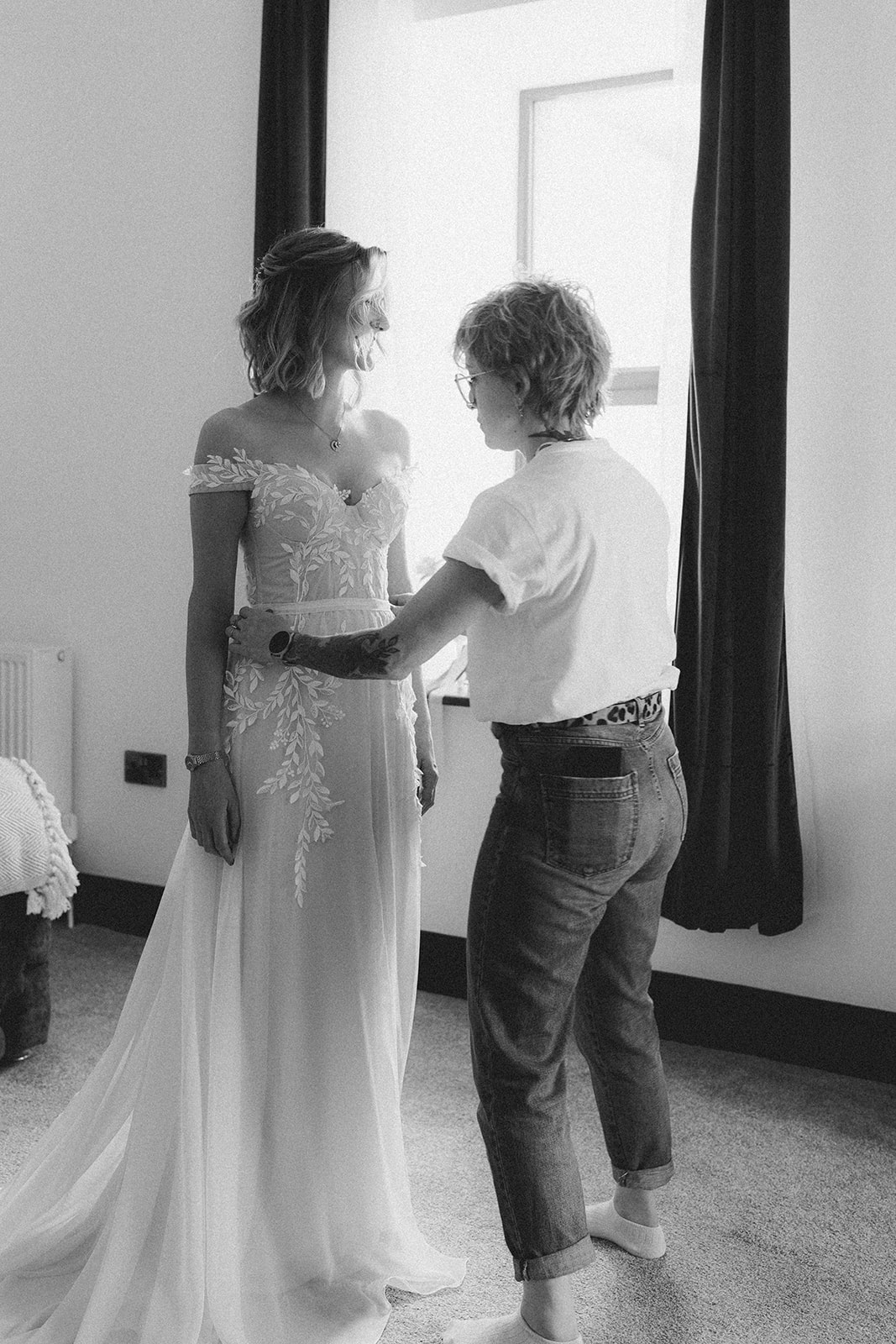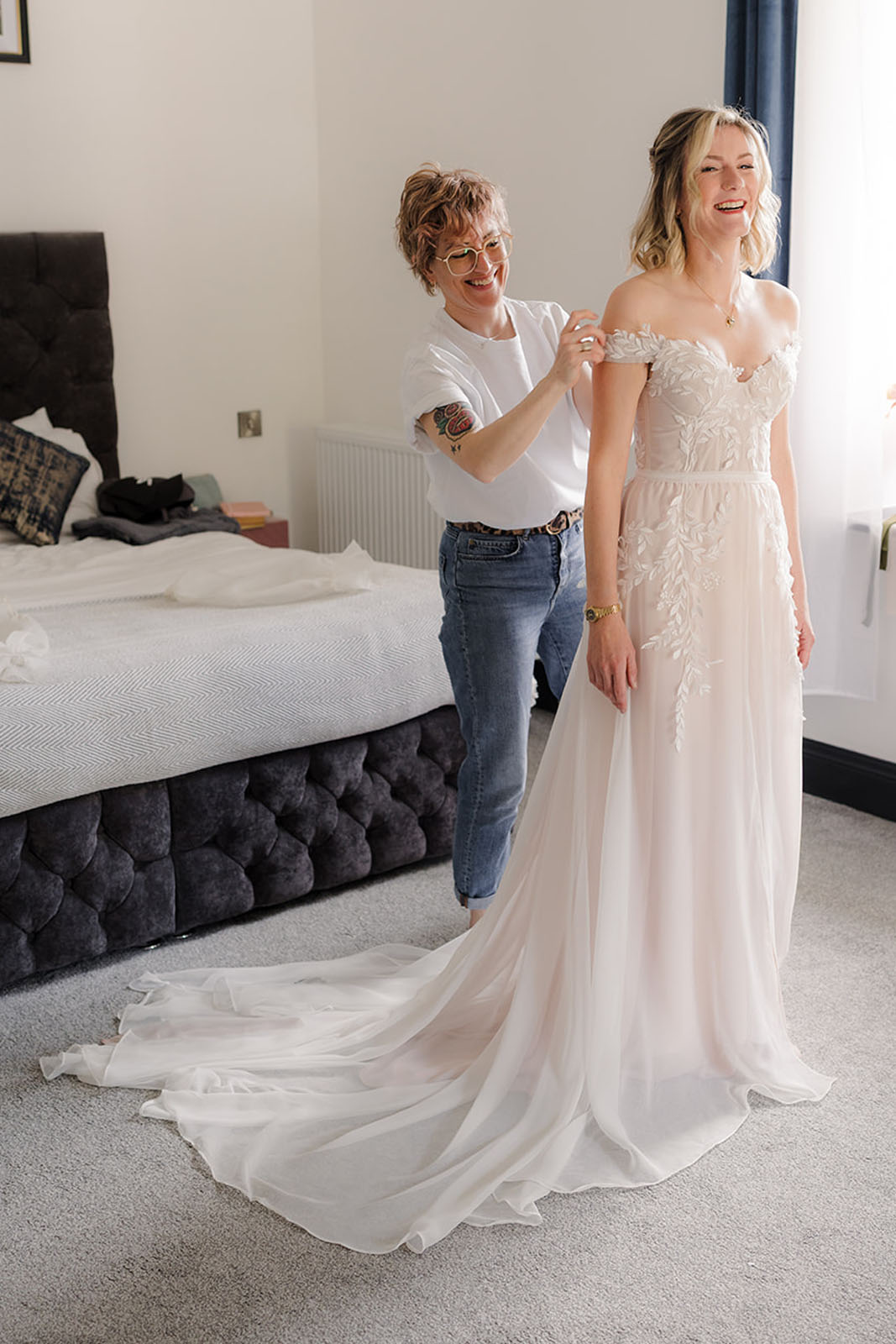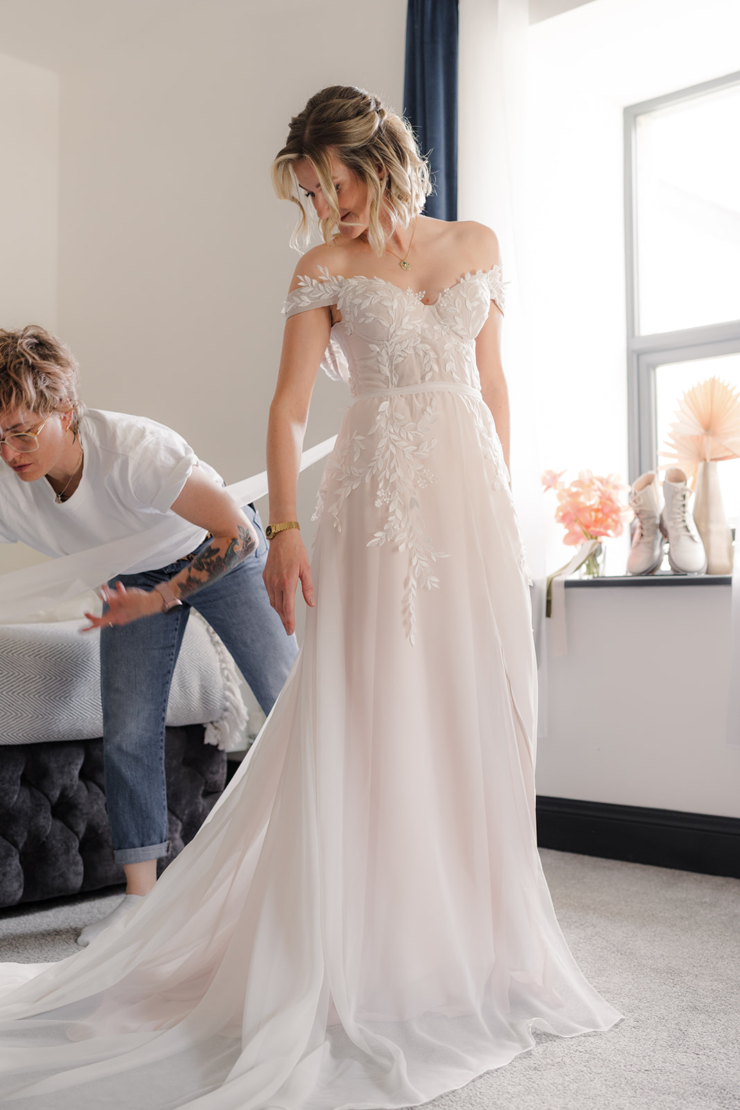 essayage de modèles de robes de mariée au showroom de Chambéry